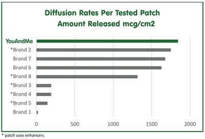 In a recent independent diffusion test conducted against 8 other Transdermal Patches of the same construction, YouAndMeAndCBD out-performed the competition over 24-hours.